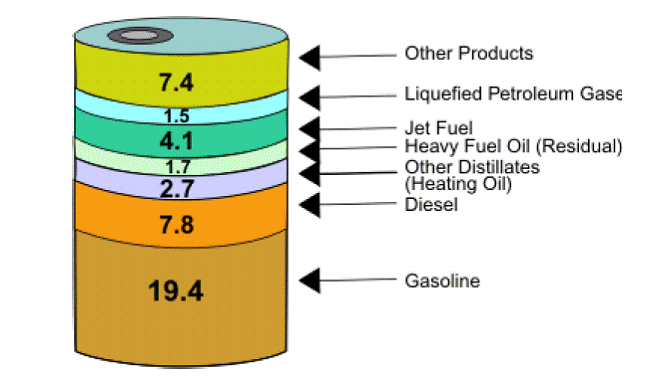 - 1 barrel (bbl) of petroleum or related products = 42 gallons.
